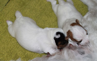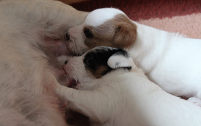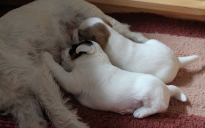 Mama Bella und den beiden Jungs geht es prima. Wir freuen uns auf eine tolle Welpenzeit!